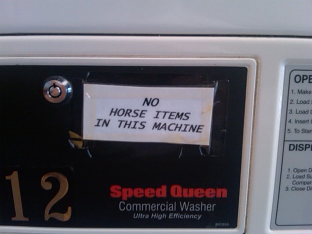 We were washing comforters at the one laundromat in town and spotted this sign...