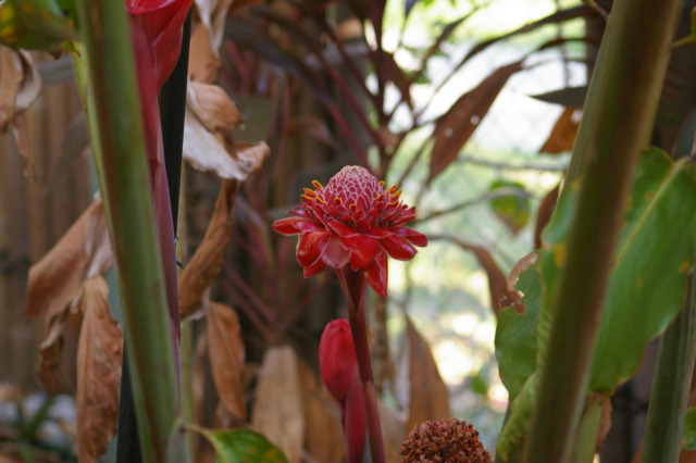 Our ornamental ginger is throwing some flowers.