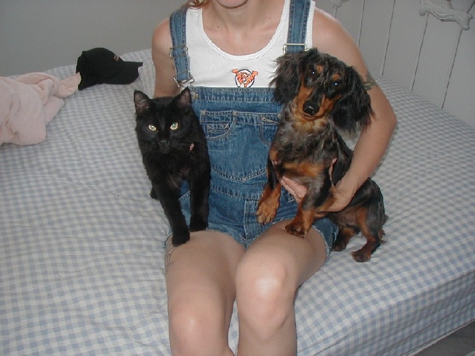 I don't have a pix to post of my pets right now, but they are 2 cats--Sasha and Garlic.
