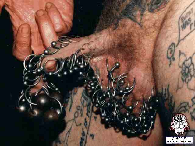 See I just wanna know why the hoops on the head of his penis have larger balls than the rest? Is he trying to stretch his dick out?