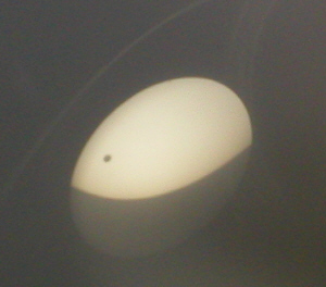 Sorry some of us didn’t post something up earlier. There’s a lot of neat and cheap ways to observe solar events safely. About the simplest is to pick up a No.12 welding lens at any welding supply or auto parts store. You’ll be able to use it for the next transit of Venus in 2012 if you’re at Sharni’s house.  (There are other events coming up in the next few years too.)
