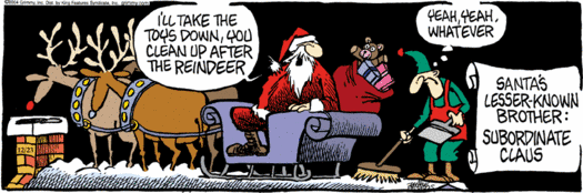 So our frustrated Santa went into the house for a cup of coffee and a shot of whiskey onlt to find that the elves had hit the liquor cupboard and there was nothing left to drink ... and in his frustration, he dropped the coffee pot and it broke into hundreds of little pieces all over the kitchen floor.