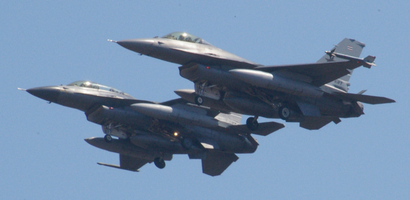 An interesting thing today. Two Thai F-16s recovered extremely closely. I don't know what the issue was, but one landed while the other did a circuit, then landed.