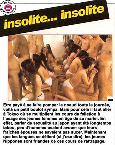 "After years of sex being a taboo conversation subject, few men could admit to their wives thats they where no good at sucking. Now that it is less taboo, blowjob lessons take place".