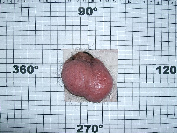 I immediately saw that my dick and bollocks were hanging in a box: the inside of which was marked off with a grid that had numbers up the side. The squares nearest to me were white – then there was row of yellow squares – all the rest were coloured in red. “This is for the Court,” she said, “We have to measure your testicles and penis under certain conditions.”