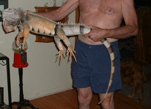 my kid, the cute one, comes home and says, " I saw this BIG lizard as I was walking home. "