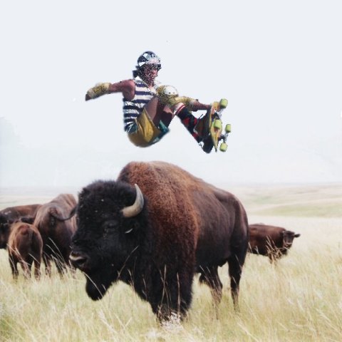 Oh pshaw...ANYONE can skateboard in a buffalo herd!