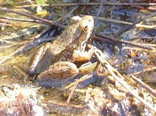 Few years back, we put an artificial pond in our backyard. Was outside dealing with various yard things today, and noticed several frogs had moved in.