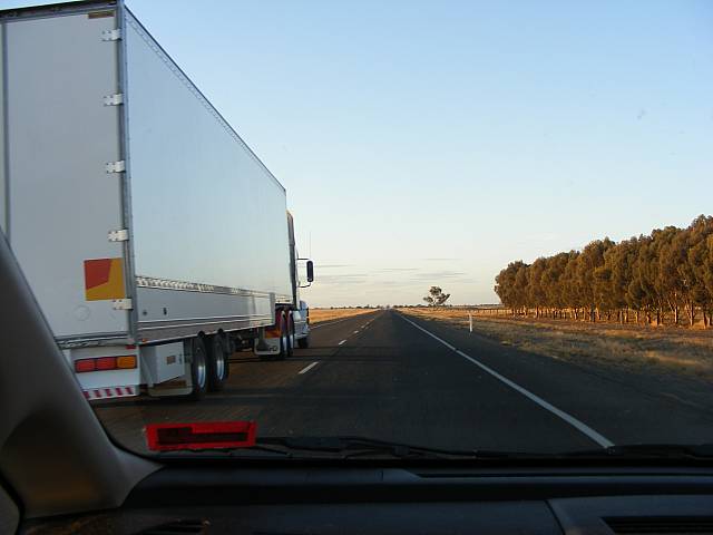 Truck pass 3 12th April 08.jpg ~ Closer, and a B-Double going the other way 110km speed limit