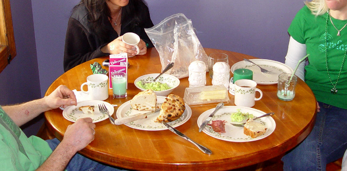 Then to breakfast with green scrambled eggs, soda bread and the first taste of the 71 pounds of corned beef for this years open house.