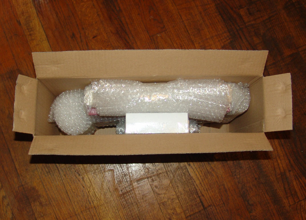 Put the completed assembly into a stout shipping carton complete with address label if available and wrap in gift paper. Just to add a tiny bit of confusion, turn it on end and stick on the gift tag to suggest upright orientation.