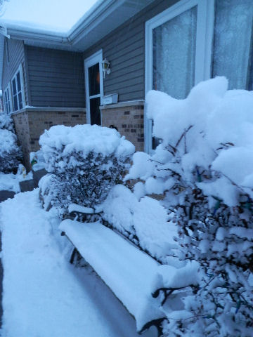 First significant snow of the season hit us last night. Just shoveled about 1/3 to 1/2 of our drive and it looks to me like we got at least 6 inches. They'd predicted 3-5" and I'm positive our yard has more than that. I'll post some pictures when it gets light enough that I can take them.