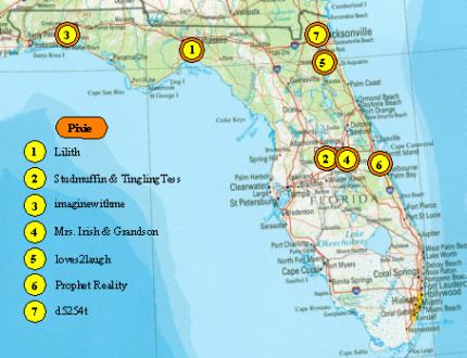 Something I have been considering for a while has now been forced to the top of my schedule by hurricane Frances. This is the first rushed attempt to keep us abreast of our Pixie members during natural disasters and the like. The thought was to have a standing library of maps with members locations when something like this occurred. It would then be posted in a thread to keep us informed of happenings around the people we have come to know and care about. The thought has been in the back of my mind since the flooding last spring in the USA.