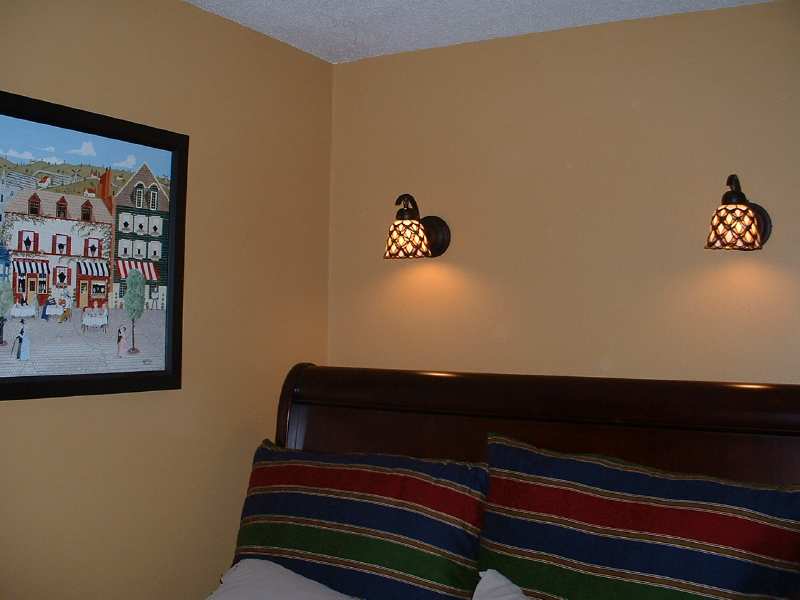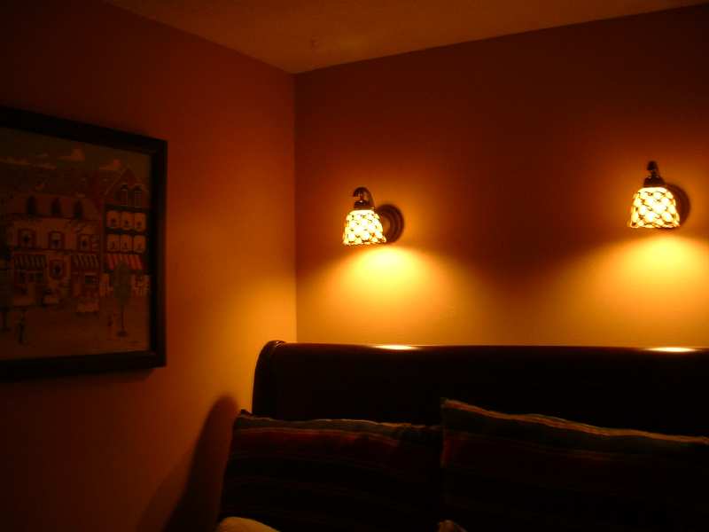 My bedroom was all celestial and beautiflly decorated but when I heard a child who had been raped describe the celestial bed set in her police interview it haunted me and I had to scrap everything in order to have peace. So I sewed a whole new room and am slowly pulling it together. My grandmother painted me a bistro/plaza scene that I have hanging. I'm hunting something to hang on the wall between my new sconces any ideas?