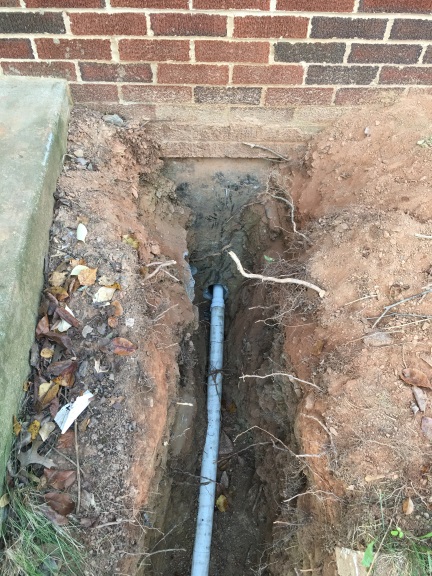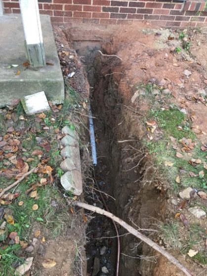 But as far as I know, nobody complained about suddenly losing power or 'net, so, the trench continued right up to the basement wall: