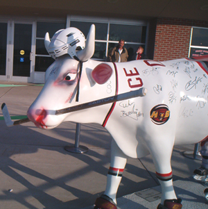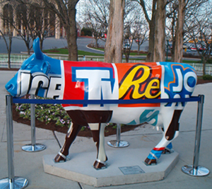 Cows are a cute idea.  I know a couple years ago we had the "Herd About Buffalo"... it was a whole bunch of... buffaloes. It was a cute idea, and they were all painted like that. The buffalo were auctioned off at the end to benefit something, I don't remember  But yes, it's fun to go see them all!