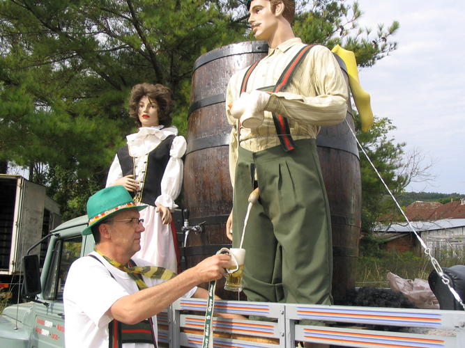 Beer? He's a Midori drinker. He's the right colour and can do a great imitation of a Tequila worm. If you ever find a lumpy bottle of Midori . . . . . .