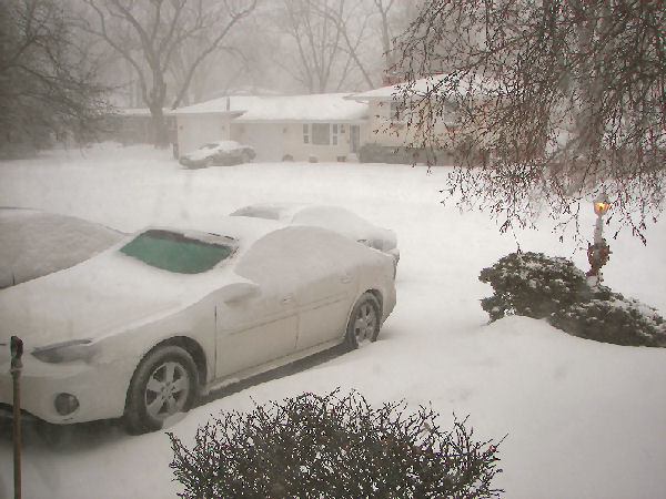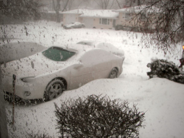 It's getting worse and worse here. Forecast now is for snow totalling 1-3" tonignt; 4-7" tomorrow; and 10 - 15" tomorrow night ... not including the one or two inches we've already received. Plus, we're getting some sleet or freezing rain so there'll be icing on the roads, too. And, the temperatures are falling ... 19F and falling right now.