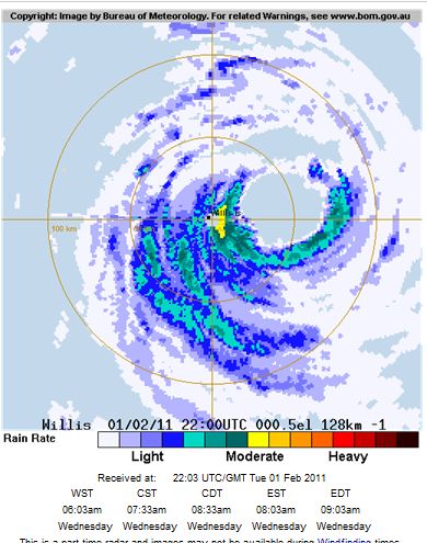 The RADAR pic from Willis Island shows no wind, so it's broken the wind gauge.