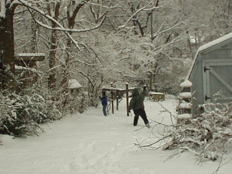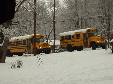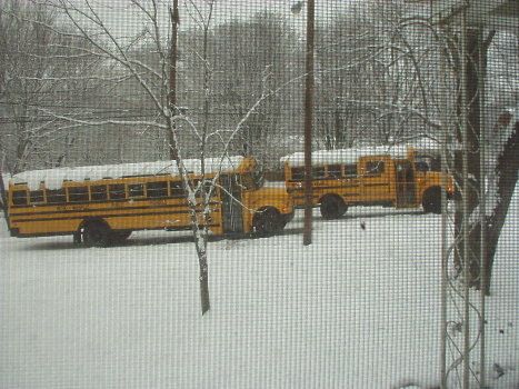 Now while we're all stranded at work or school, #1 son (20 yrs old & still no job) is helping people get up our street, a treacherous curving hill, & later he lets someone park in our drivway since she can't make it up the hill...wife goes to pick up #2 son (since the buses are stuck in traffic) finds her way home ok, but she can't get near the driveway...she knows a car is there, but now there are TWO buses stuck in the middle of the street in front of our house...she has to park in the driveway across the street...