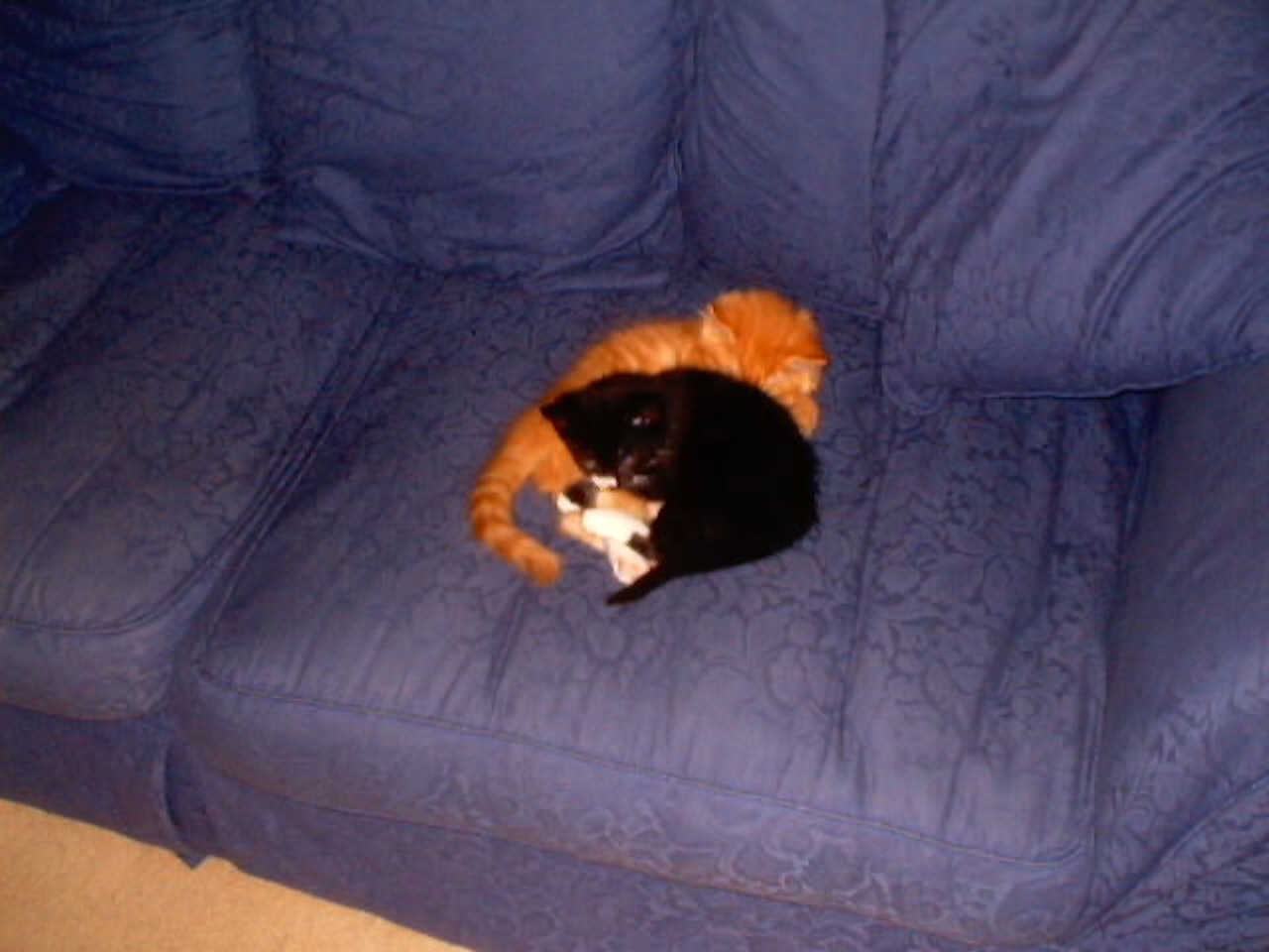 Of course they still are wrecking the house, but probably not as badly, since at least a lot of their energy goes on playing chase and football with ping pong balls.