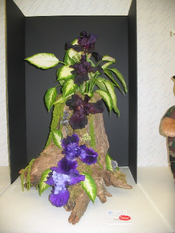 This one is a tree stump darogle picked up out of the creek and drilled holes in it for me to put flowers in then cut out the back to hold a vase. It got second place. He worked really hard on it. We nicknamed it Bigfoot.