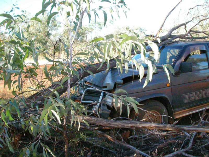 On the way to Halls Creek on the first night's drive, there was a series of dry creeks. At 120kph we hit the only one that wasn't totally dry. It was unsigned and a total shock. For a moment I thought we were dead.