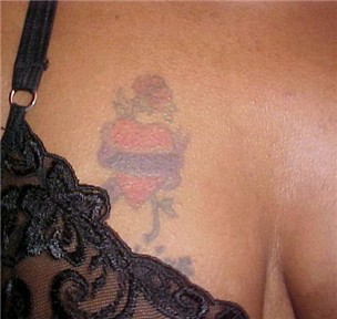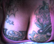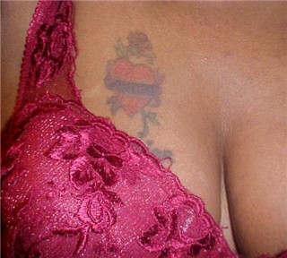 left tittie and a red feather on my ankle. Neither one of them