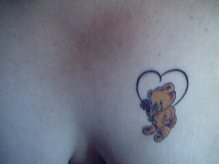 Okay, this is one that is right above my pants line on the center of my back. It's not a very good pic, seeing as how I took it myself. There is no color in the top of it because I thought that it would be unique.