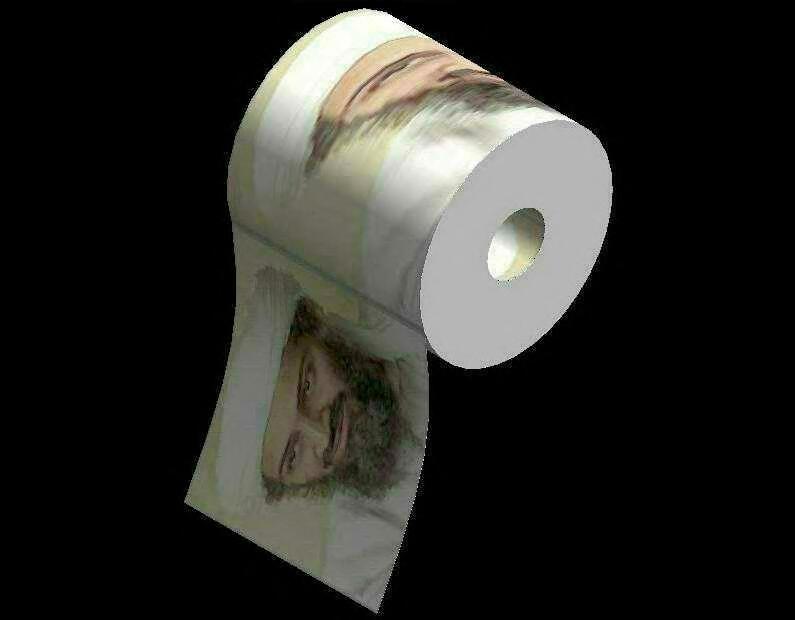man's amazement he is trailing behind him the unrolled roll of duck
