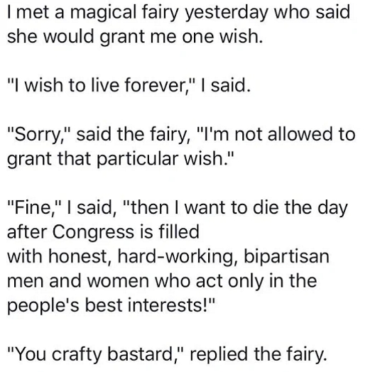 The next morning, when the barber went to open up, there were a dozen Congressmen lined up waiting for a free haircut.