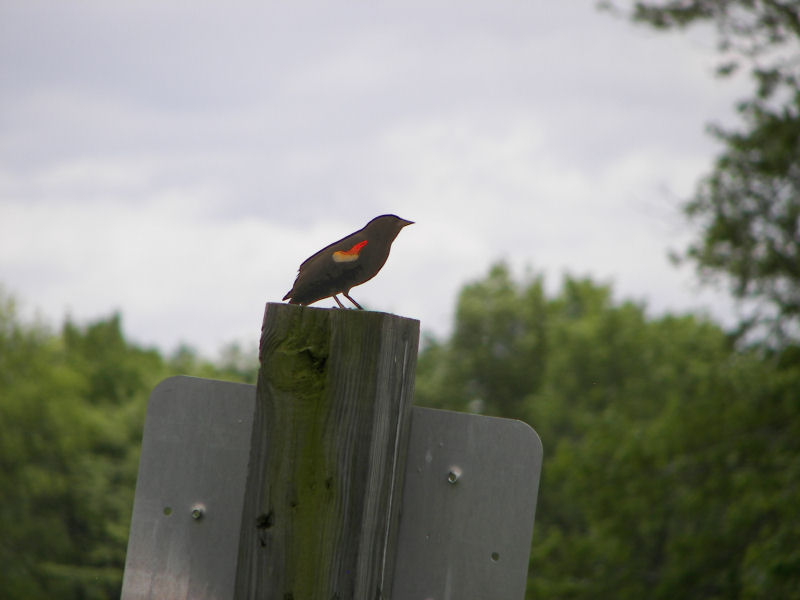 Got a nice picture of a "red-wing blackbird" this morning when I went for a walk. Those red shoulder feathers are quite striking. This feller was nice enough to pose for me.