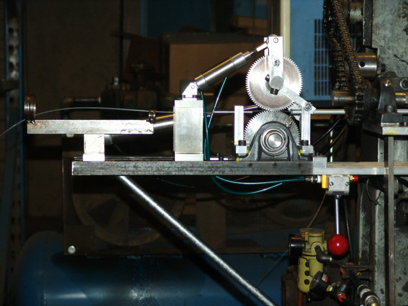 It advances three wires 3.375" (8.57cm) distance in a 105 millisecond window, holds it for cutting and advances again.