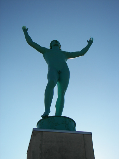 First, another beautiful flower; then, the statue of the "Sun Singer" which measures 35-40' from the bottom of the base it rests on; and, a vase of flowers that one of the Allerton directors gave us for our anniversary. Over that past couple of years we've made good friends with her and she was thoughtful enough to do that.