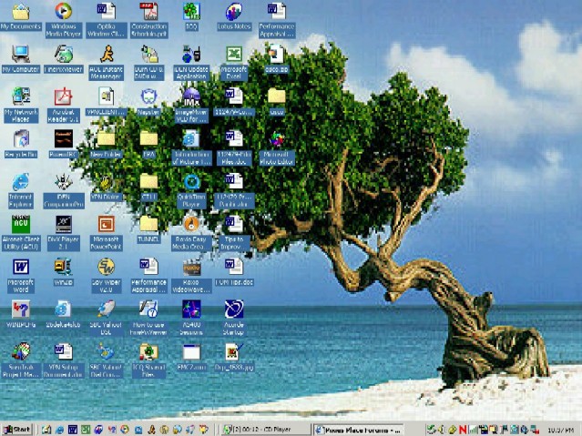 Well for one reason or another, I can't post a picture of mine. But in the spirit of the thread I'll let you know that I have a picture of my girlfriend as the wall paper with the usual assortment of icons scattered about.