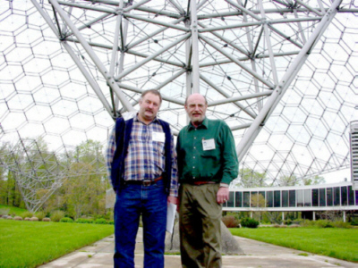 Our private guide was willing to snap a pic of us at one of the legs of 103 ft. high geodesic dome designed by R. Buckminster Fuller. It really is a symbol of man’s mastery of his metal resources.