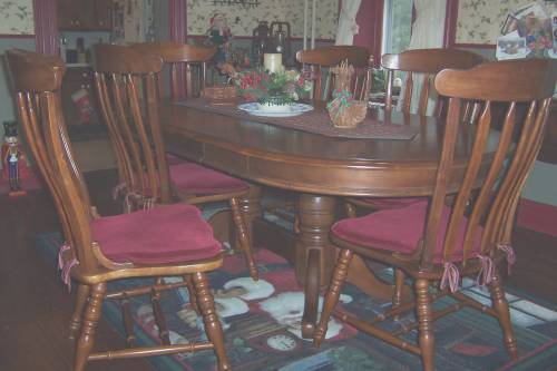 In the meantime, I got ambitious and made a pattern (from scratch...a first for me) for my dining chairs and made custom chair pads to "finish" off the room's new look.