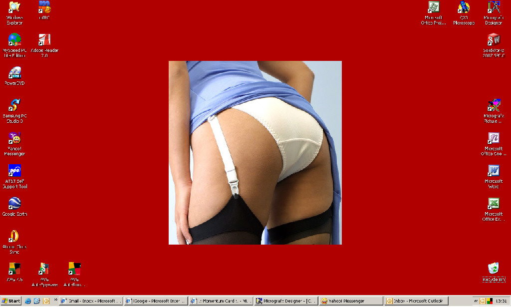 The porny wallpaper changes according to whim. I love having a home computer to myself, just for being as dirty as I please with the stuff I can't do at the office.