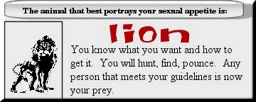 "You know what you want and how to get it. You will hunt, find, pounce. Any person that meets youre guidelines is now youre prey" hehehe
