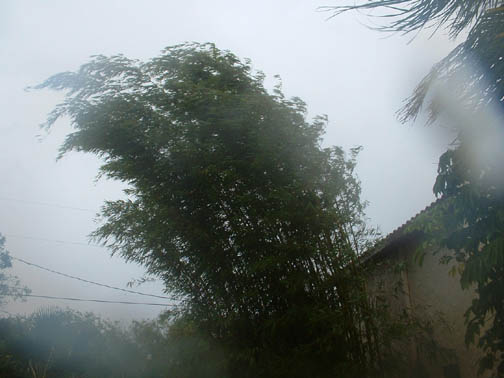 Sitting here looking out the window at the trees whipping, huge gust come suddenly and then stop. Its raining hard, blowing in every direction. The worst will be 2pm our time. We are very lucky to still have our power.