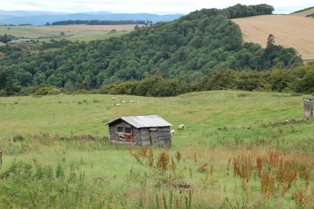 Second one was, Tuesday afternoon up Croy Hill (where the "bush" and "tree" pics were taken) heard a "caw caw" sound up above. Looked up, and the breeding pair of buzzards I've been sort of keeping an eye on all summer were flying out, with "Buzzy", their one-and-only chick, obviously out for his first (or one of his first, anyway) flights, with mum and dad squawking to keep him right! Beautiful!