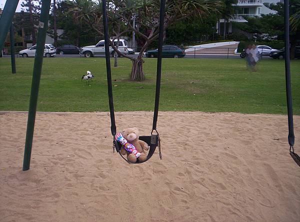 Henry having a swing with his easter bunny (my kids ate *LOL*)