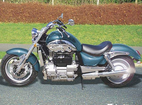 Here's a picture of the three bikes that went on our ride last year. Mine is the Maroon one on the left. The next one is my buddy's 1997 Valkyrie. The one on the right is the 1987 Suzuki Intruder my wife rode. Irish, I'll try to post a picture of my wife's Legend next. It is a 900cc triple based on the old Trident motor. I've also got a picture you will be really interested in. It's a new cruiser Triumph is going to produce. I't's a 2300cc in line three cylinder. I think you'll like it.