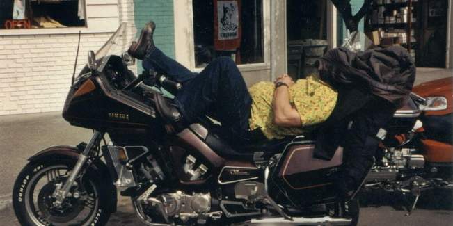 One more. My wife and my riding buddy's wife were in a quilt store, so I decided it was time for a nap. Damn woman snuck out and caught me with the camera.