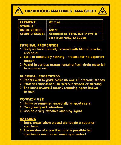I'm afraid it is so, Diva... and you won't find a MSDS on men, 'cuz we're an inert element