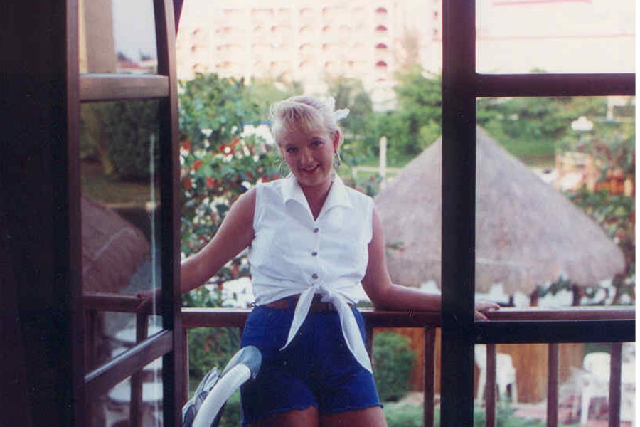 I don't have any old photos scanned in, this is the oldest I have on the computer...from '97. I was 18, summer after I graduated. That's hubby's (then my just out of school bf) arm around me