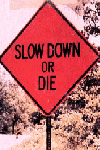 another extreme, this is an actual sign that was placed before a very sharp curve with a big drop off, so many people died from not slowing down they put up a convincing sign.