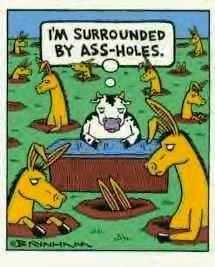 "That's not what I'm laughing at," he replied, "I'm a salesman for Preparation H, so I'm still a hole behind you."