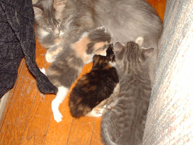 Fluffy's kittens are three weeks old today and she's finally letting me have a bit more access to them so I snapped a few pics of them today.