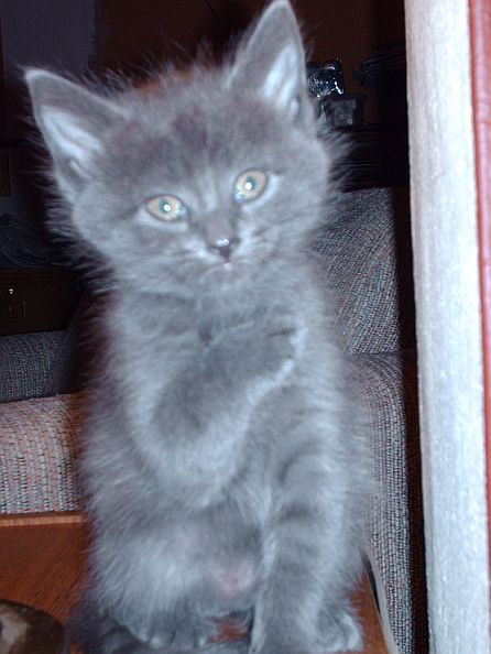 I have a grown Russian blue. She was cute like that when she was little. She is 14 years old now.